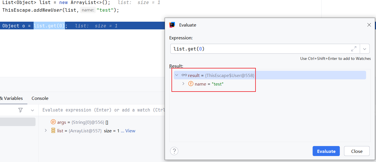 最终调测结果如下,可以看到外部类的this实例构造不再逸出: