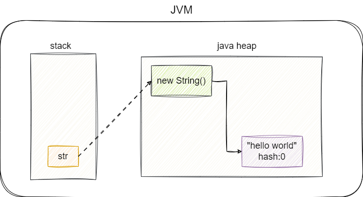 在完成该字符串对象的创建时,因为final对于value的修饰,其底层本质上就是创建了一个hello world的original不可变字符串,然后再创建一个String对象,并将其value和hash值设置hello world以及hello world的hash值: