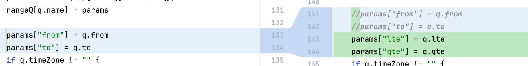 经过拆解后,笔者最终整理出了最简修复决策,即将底层客户端拉取下来进行魔改,将from、to语法改为gte和lte: