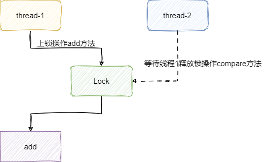 随后我们给出两个线程分别调用add和compare方法: