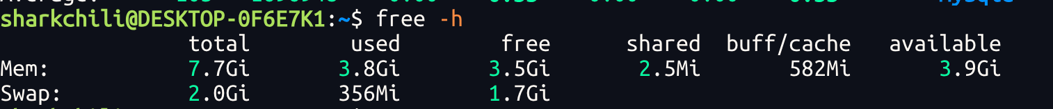 free命令用于查看系统内存使用情况,包括物理内存和交换空间的使用统计。一般情况下我们使用free -m以MB或者为单位查看内存使用情况,当然我们也可以通过free -h易读模式查看内存使用情况: