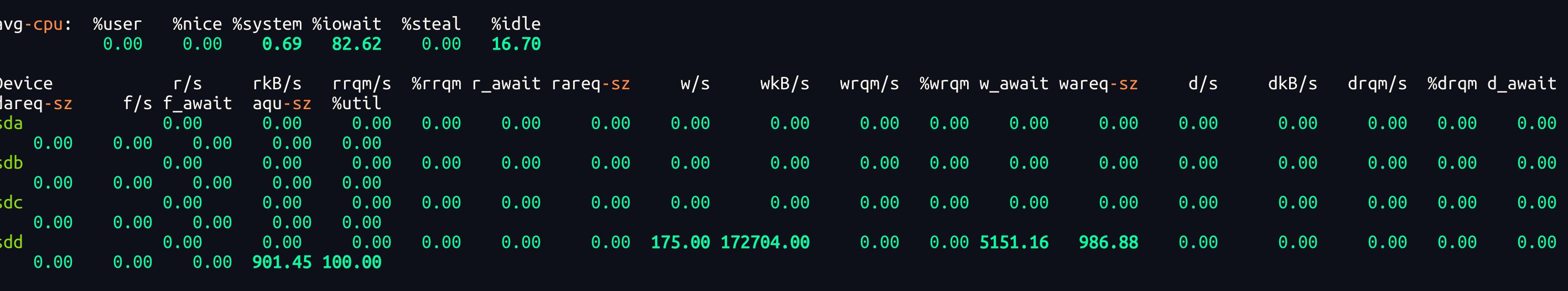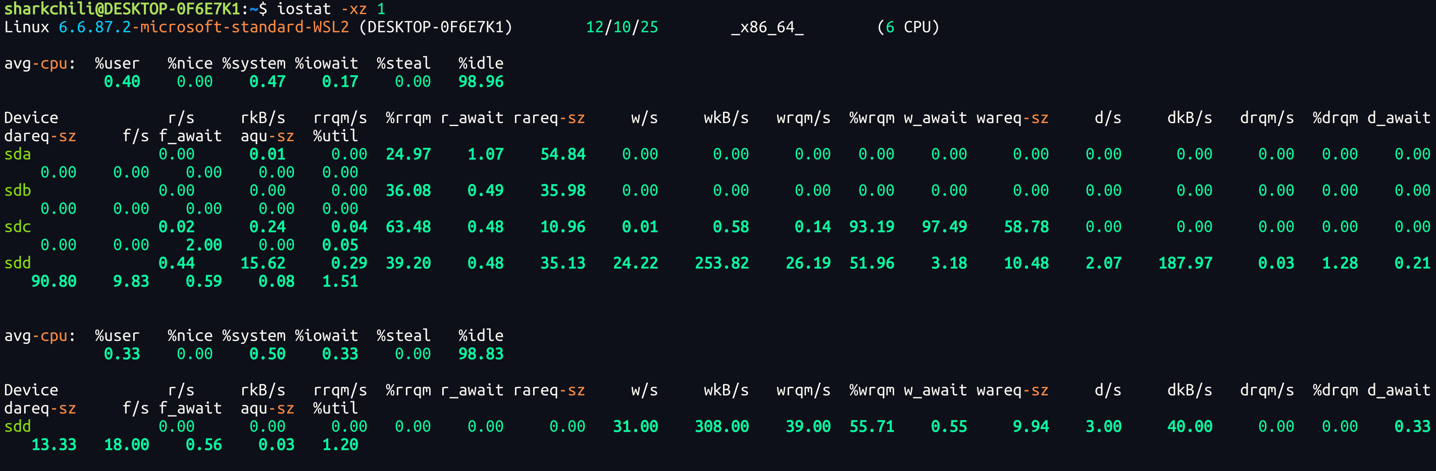 - util: 设备使用率百分比,如果持续高于80%说明设备可能成为瓶颈