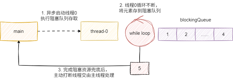 对应的我们也给出测试代码,即在消费者阻塞后将其打断,并投递元素,让其完成优雅中断: