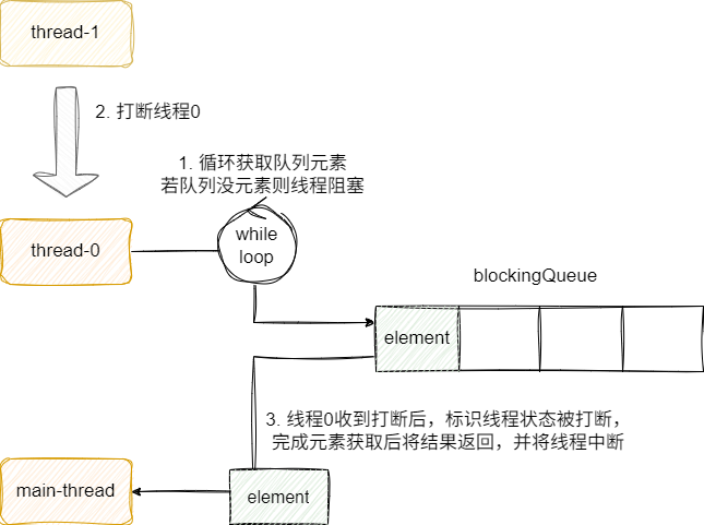 - 获取到元素并返回,在返回前将当前线程打断,让外部感知