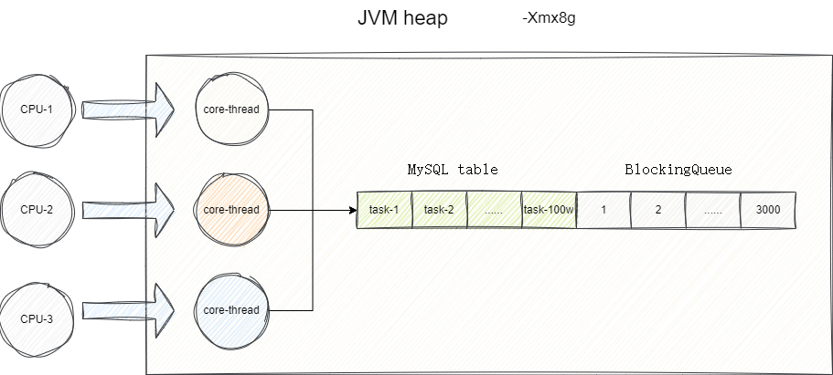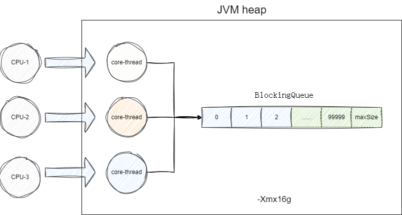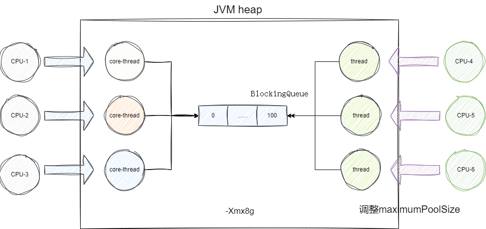 每次任务提交时,线程池都会尝试将任务提交到核心线程上,如果线程数小于核心线程数,线程池就会添加工作线程并执行当前任务。 若核心线程都处于工作状态,这就表明当前线程池有些忙碌,那么这些无法及时处理的任务就会提交到阻塞任务队列中。 随着任务的递增,任务队列无法容纳最新的任务,线程池就会认为现处于高峰期,便临时增加应急线程处理任务。随着任务逐步处理完成,线程在指定时间内没有要处理的任务,这些线程也就会依次退出。