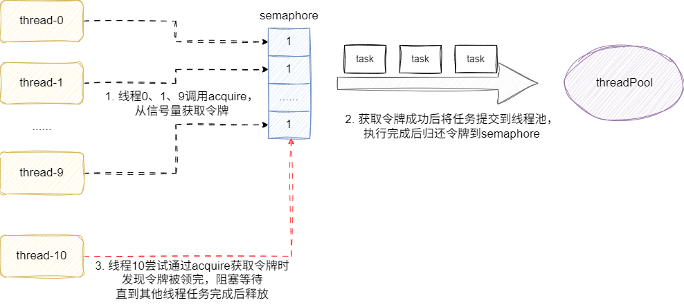 bound作为信号量数量,确保单位时间内只有bound个任务可以使用RateLimitedExecutor中的线程: