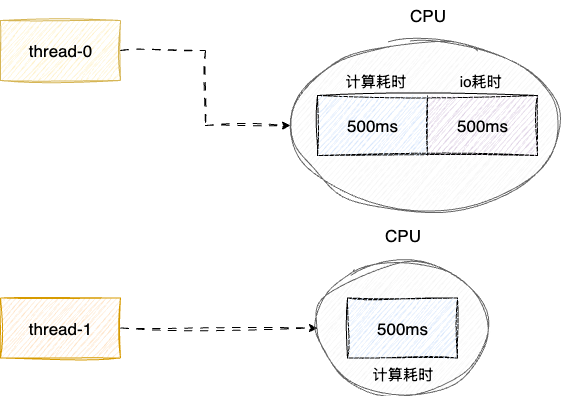 - 文件读取操作因为IO wait时间过长导致阻塞也就是IO密集型