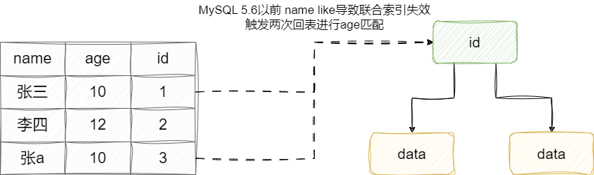由此我们得出,因为数据表中存在范围内的k分别有3和5,基于范围查询所以触发一次回表。