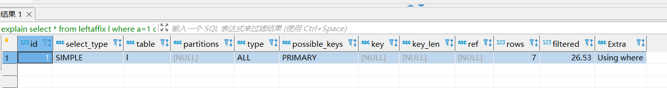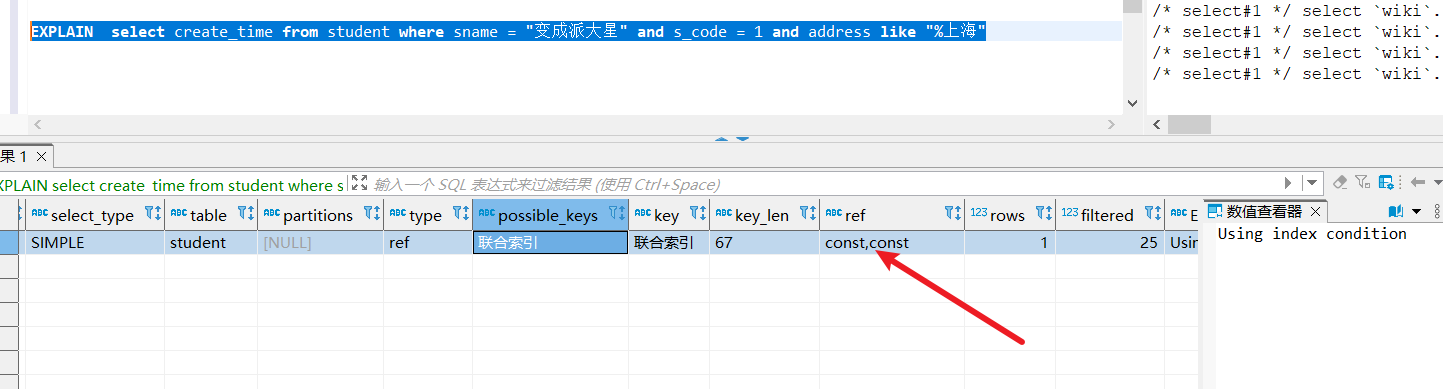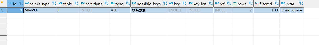 最后看看神奇的一条,左边为字符类型,右边为int类型,走了全表扫描,查出来的数据有好几条,这正是我们说的索引失效问题
