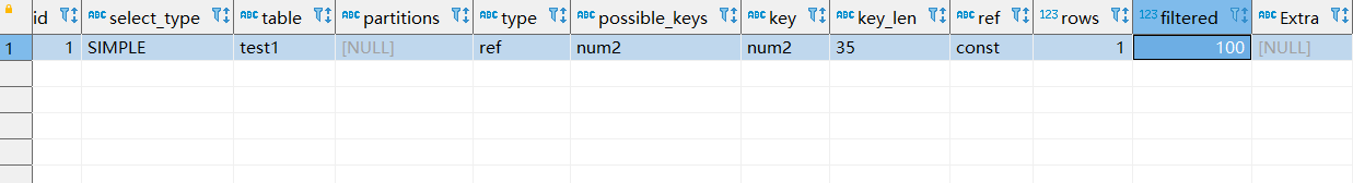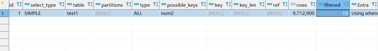 explain SELECT * FROM `test1` WHERE num2 = '10000';