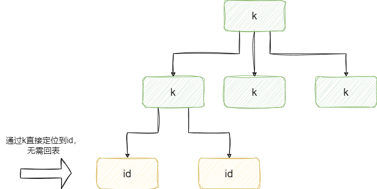 这段SQL要查询的刚刚好是id,而通过我们的索引k即可直接定位到id的值,无需进行回表这就是我们所说的索引覆盖: