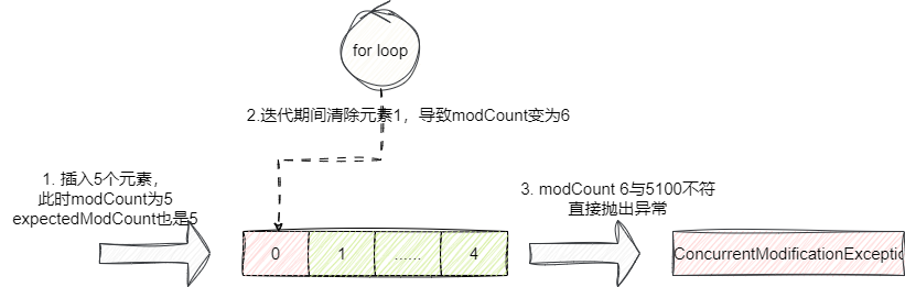//当前循环遍历次数和预期修改次数不一致时,就会抛出ConcurrentModificationException