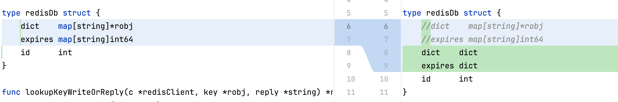 完成字典的开发之后,笔者便打算将mini-redis数据库底层数据结构进行重构,将go原生map改为复刻的redis经典的dict,于是笔者索性直接从结构体开始改造: