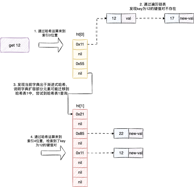 ht[1] - 在此期间所有增删改查操作都会逐步驱逐一批元素到