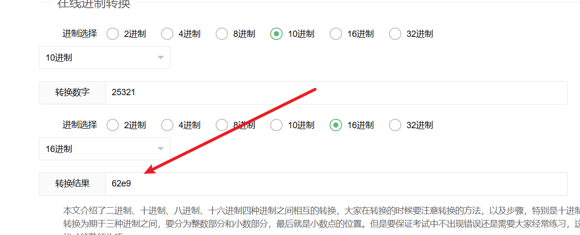 键入jstack -l 24411 >/tmp/log.txt到处日志,然后将线程号25321转为16进制,这里笔者使用了一个在线的网站地址