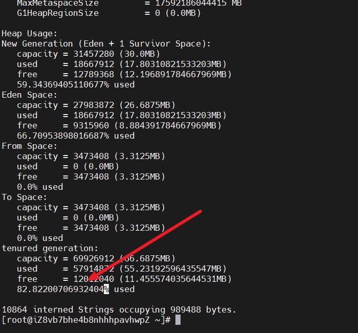 从下面的日志可以看出老年代使用率高达82%,很明显有一些长期没有释放的对象在内存中导致OOM问题。
