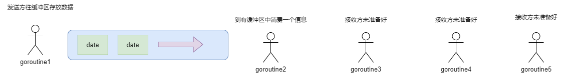 有缓冲区通道则允许其中一方未准备好,亦或者允许发送方填满缓冲区时阻塞发送方,缓冲区无数据时阻塞接收方,是典型的生产者消费者模式。