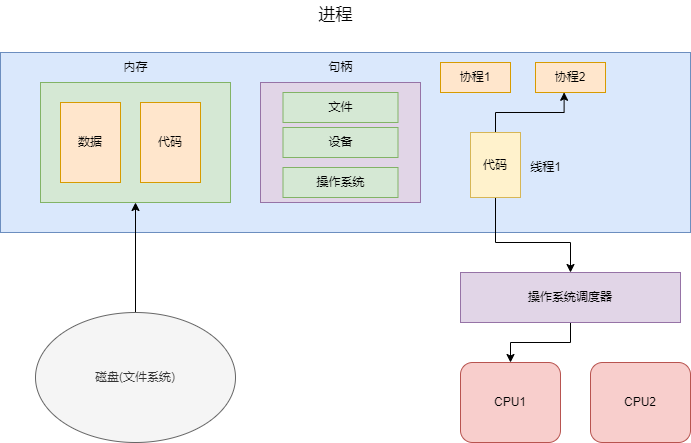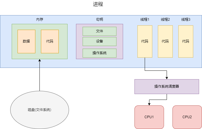 - 进程执行时,都是以线程为单位,所以每一个进程至少都有一个线程,每一个线程都会对应一个功能代码段,然后操作系统调度器根据某个调度算法执行进程中的线程代码。