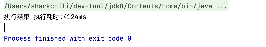 System.out.println("执行结束 执行耗时:" + (end - begin) + "ms");