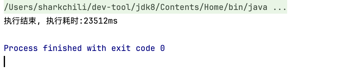 System.out.println("执行结束,执行结果:" + JSONUtil.toJsonStr(resultList) + " 执行耗时:" + (end - begin) + "ms");