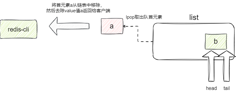 lpop 操作最终会走到lpopCommand函数,该函数先先得到链表首元素,将其从链表中删除后将这个value返回给客户端: