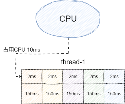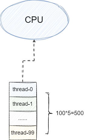 完成线程处理能力大体评估之后,我们就需要从处理的维度进行更进一步的评估,假设这个接口CPU处理时间为2ms,而IO等待耗时为150ms,其余时间作为网络读写的耗时(读写redis数据等),这也就意味着一个线程在单位时间内只占用CPU大约10ms,也就是说单个CPU大约可以处理100个线程,也就是每个核心在理想情况下,每秒可以处理500个请求。