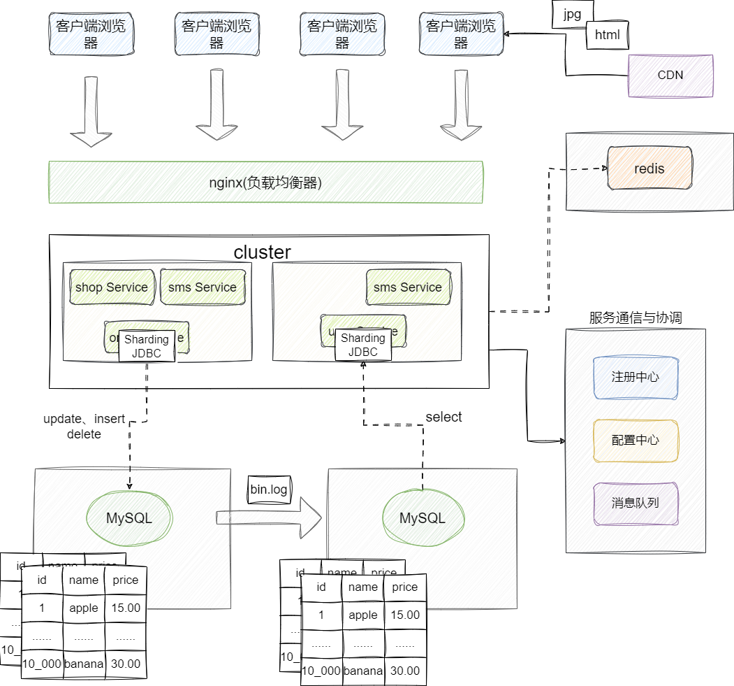 - 可以灵活结合业务场景进行服务拆分、堆加服务器,快速拓展以抗住高并发流量。