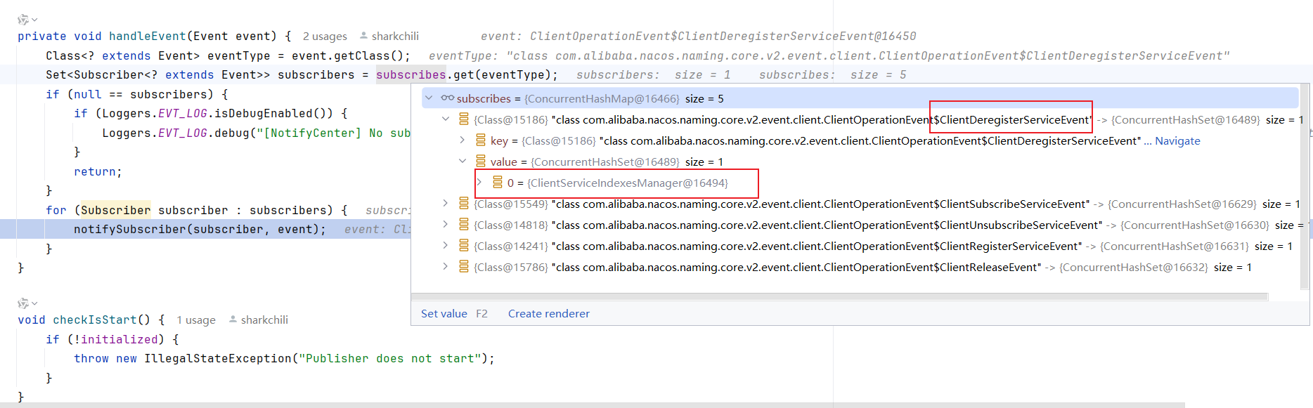 if (event instanceof ClientOperationEvent.ClientRegisterServiceEvent) {//处理服务注册事件,实际上就是发布一个ServiceChangedEvent事件