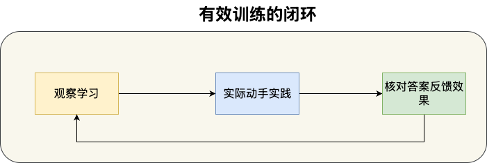 - 反馈答案:执行后需要得到答案或评分。例如学习Redis跳表时,画完跳表结构后需要对照文章检查自己画的是否正确;模拟完插入操作后需要用Redis实际运行命令验证结果。又比如婴儿学说话时,父母的表情和反应就是天然的反馈——没有反馈就无法确认自己说得对不对。反馈答案的作用是让大脑知道如何更新神经结构,这是有效训练中不可或缺的环节。