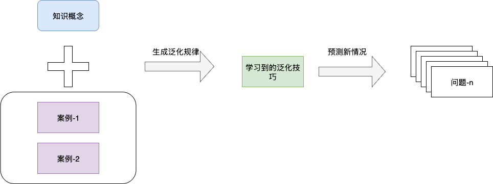 与记忆不同,知识的目标是生成新信息、解决新情况,即泛化。这类规律不是凭空产生的,而是通过大量实例,经过实践、归纳、总结得出的。
