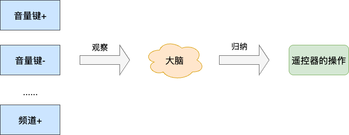归纳学习最经典的例子是学习遥控器的使用:初次使用时我们并没有阅读说明书(指令学习),而是通过操作按键观察电视的反馈,让大脑利用这些实例构建出使用规律。