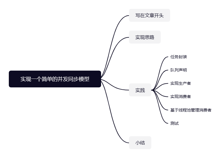 本文整体结构如下,通过笔者的代码示例,你会对生产者消费者这种并发同步的设计模式的开发模型和使用场景有着更进一步的理解。