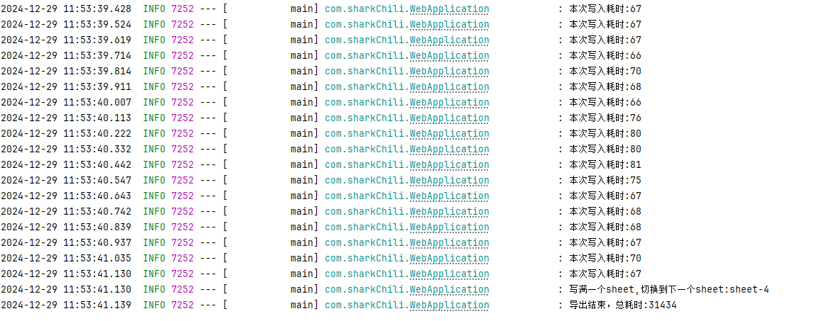 基于上述查询语句,我们不断拿到user对象,因为流式查询避免的频繁的IO分页请求,所以真正的写入瓶颈点在于写入到excel文件中,所以笔者在流式聚合数据时是通过每1w条进行一次写入,保持每100w切换一次sheet。