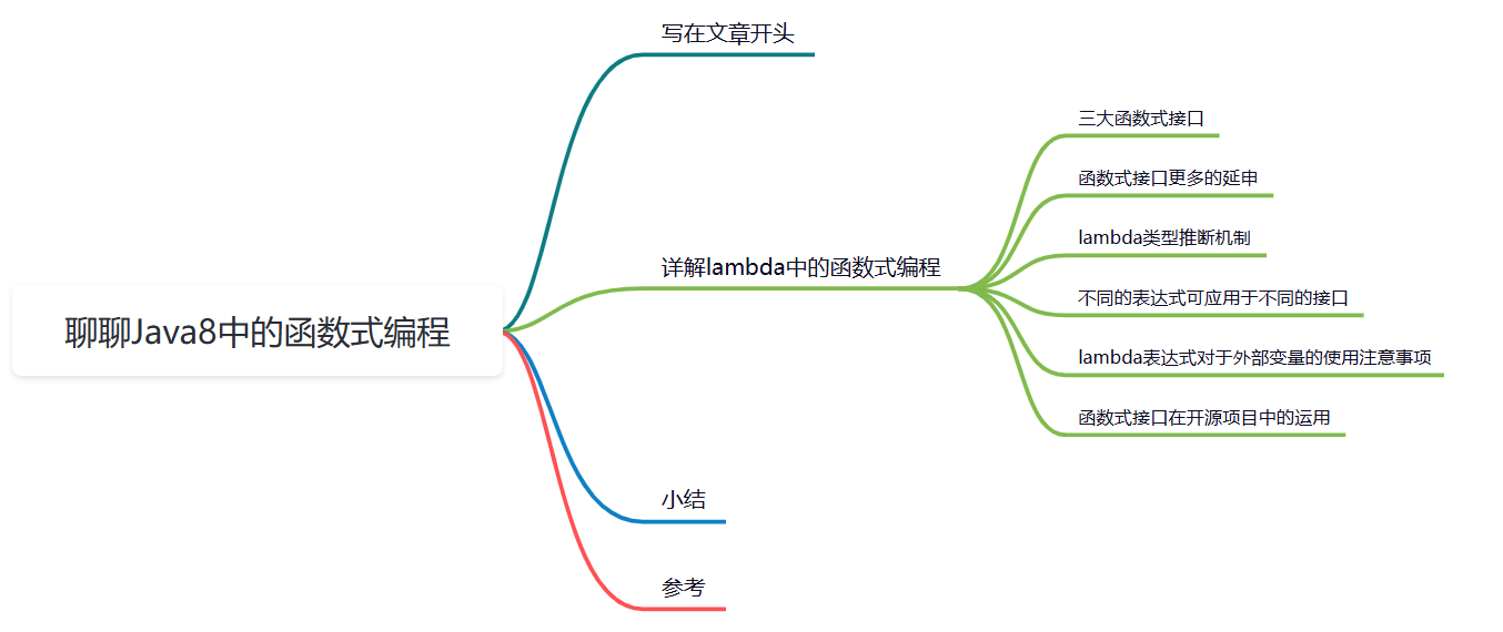 自此我们从几个实践案例和开源项目的设计中了解到函数式接口的编程理念,这里我们简单小结一下函数式编程的使用方式:
