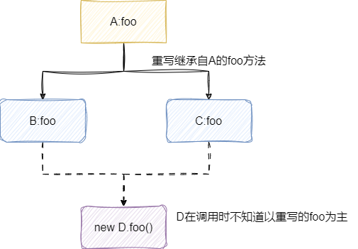 多继承会带来棱形继承问题,会带来各种不友好方法管理,例如B、C同时继承A并重写其方法foo,假设D继承了B、C,此时D若要调用foo方法就会出现矛盾,所以Java语言设计者在设计之初就抛弃这一概念,只能允许继承一个类和多个接口: