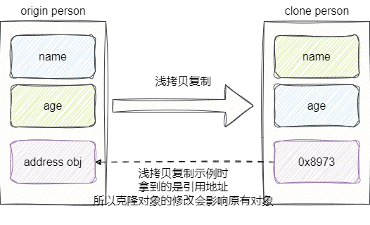 浅拷贝如果对象内部有对象仅仅复制对象的的内存地址,这意味着浅拷贝得到的对象被修改后可能会影响到原有对象的值。