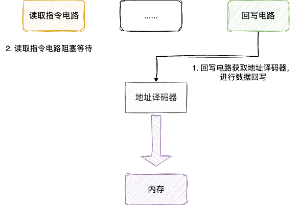 在CPU内部流水线中,如果执行指令的电路和读取数据的电路都需要访问内存,而访问内存的地址译码器只有一个,这就使得一方必须阻塞等待,导致双方中必有一方需要阻塞等待,这就是结构冒险: