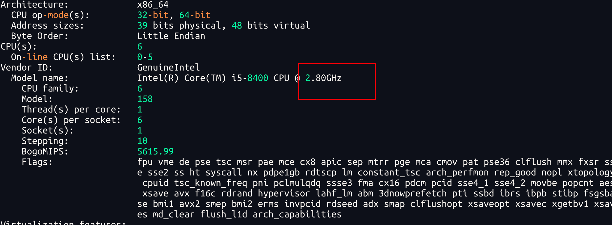 以笔者服务器为例,对应CPU主频为2.80GHz:
