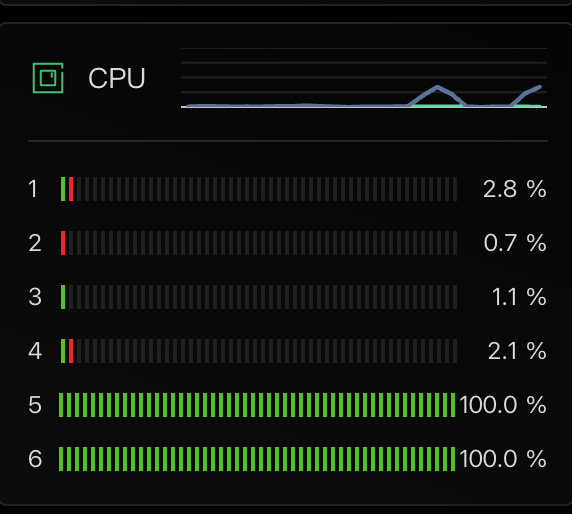 编译启动后,指定的两个cpu使用率跑满了: