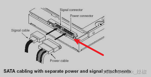 同样的磁盘传输速度也是非常重要的,传统磁盘连接界面包括有 SATA, SAS, IDE 与 SCSI 等等,但如今SATA已将IDE取代,而SAS已将SCSI 取代。如下图所示,这就是SATA的插槽。