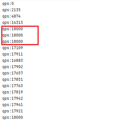 最终输出结果如下,可以看到,在程序启动后JIT预热阶段完成后,基于我们设定的线程数是可以完成单位时间内执行18000个任务:
