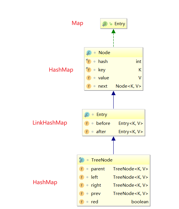 在正式讨论LinkedHashMap前,我们先来聊聊LinkedHashMap节点Entry的设计,我们都知道HashMap的bucket上的因为冲突转为链表的节点会在符合以下两个条件时会将链表转为红黑树: