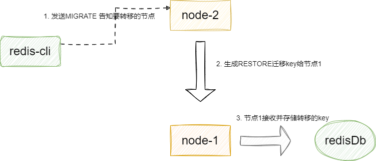 - 通过步骤1能够告知对应的slot的新数据的存储指向,对于旧数据我们还是需要通过指令完成迁移,其本质就是服务端定位到对应slot上的key然后生成