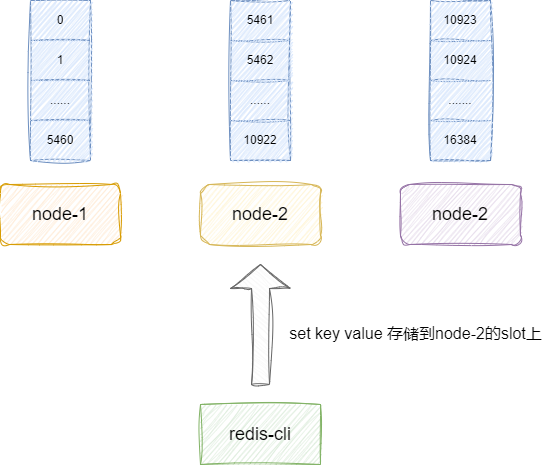 redis集群提供16384个slot,我们可以按需分配给节点上,后续进行键值对存储时,我们就可以按照算法将键值对存到对应slot上的redis服务器上: