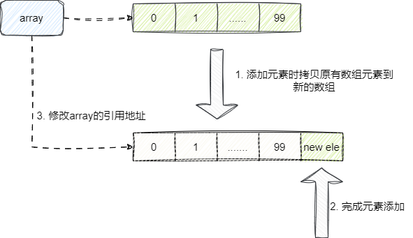 Object[] newElements = Arrays.copyOf(elements, len + 1);