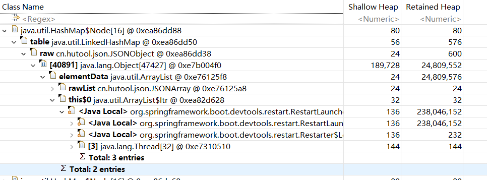 正是因为这样一个为了保证数据散列均摊且还能顺序遍历的数据结构,导致仅仅10w条的数据占用了大量的内存,从而导致了OOM。