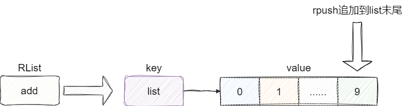 + "redis.call('rpush', KEYS[1], value);"