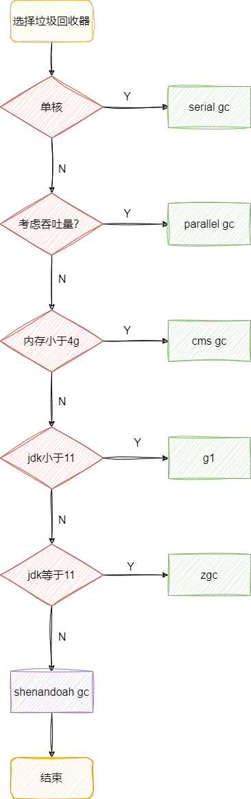 - 如果jdk版本小于11则直接选择g1,如果等于11选择zgc,反之就是选择