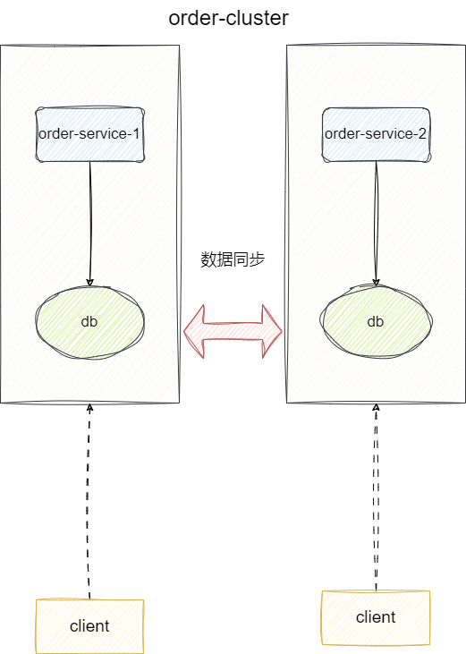 回答这个问题,为什么CAP不能同时满足,这里我们给出这样一个场景,有一个订单服务的集群,提供系统订单的业务操作,因为业务体量原因采用分布式集群,各自一份库源,服务之间会不断进行数据的同步: