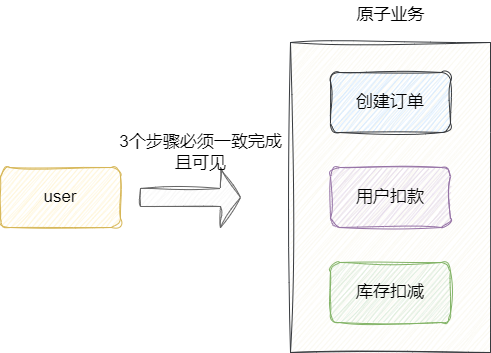 B(Basically Available):基本可用,即不要求分布式场景在出现故障之后,允许损失部分可用性,只要保证分布式系统服务基本核心可用即可。S(Soft State):软状态,允许分布式系统执行过程中数据存在中间状态,例如:初始化、处理中、已完成,有了软状态才能保证分布式系统失败后不断重试,保证数据最终处理完成。E(Eventual Consistency):最终一致性,即分布式系统所有的副本在一段时间后都会达到一致状态,举个简单例子在传统事务情况下,用户下单的流程是创建订单、用户扣款、库存扣减3个步骤,在传统的强一致性的情况下,这三个步骤在单位时间内用户要么看到没创建订单、没扣款、没扣减库存,要么看到创建订单、用户扣款、库存扣减: